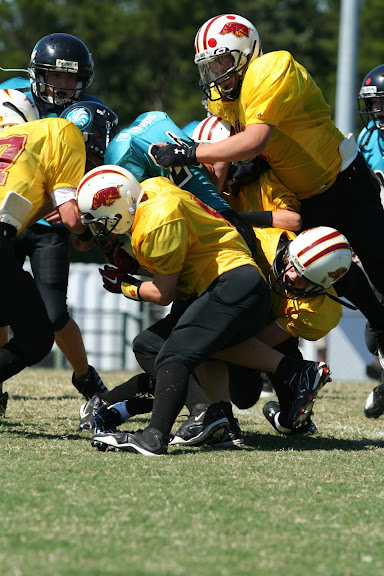 These two guys were still going at it after the play had turned about 30 yards downfield. They kept pushing each other until the whistle.